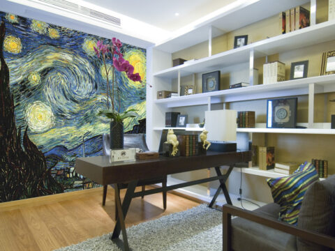 Paint can go beyond walls. You can put it on unexpected surfaces, such as ceilings and accessories. Try a bright hue on the interior of a bookshelf or stair risers for a fun twist.